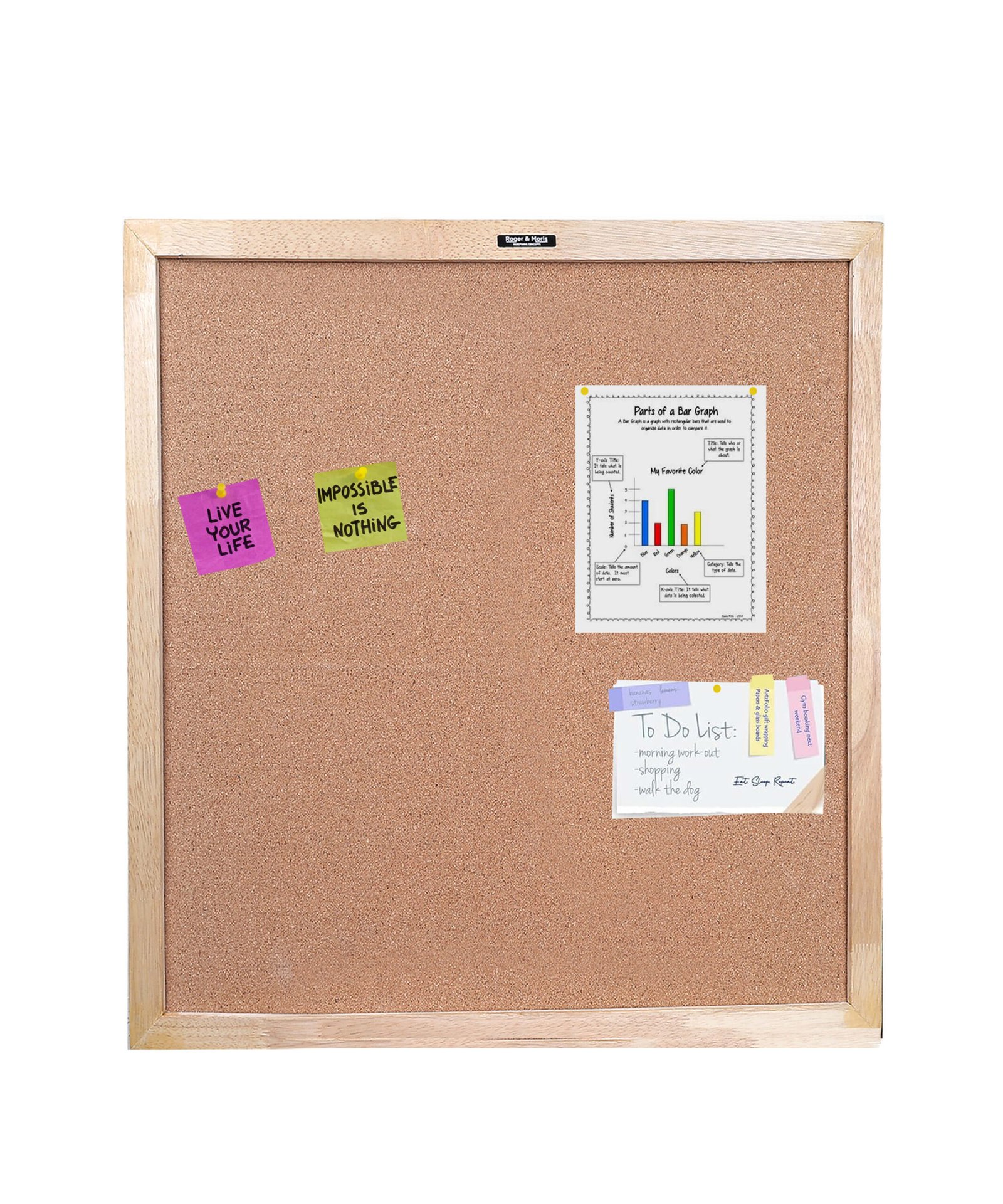 Be the first to review “Roger & Moris Rubber Wooden Frame Cork Board – Sturdy, Waterproof for School, Office, Home”